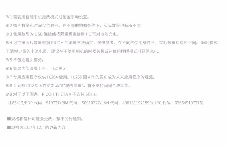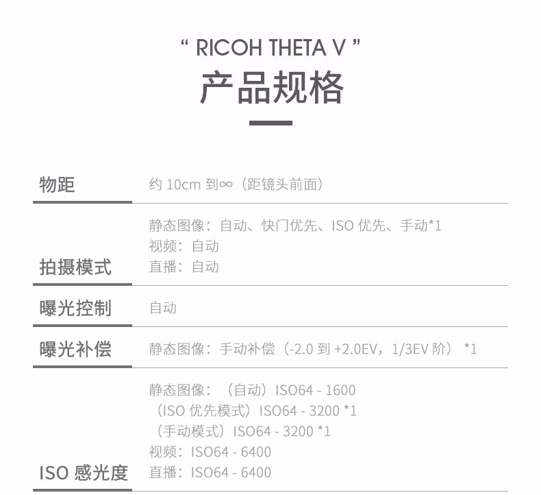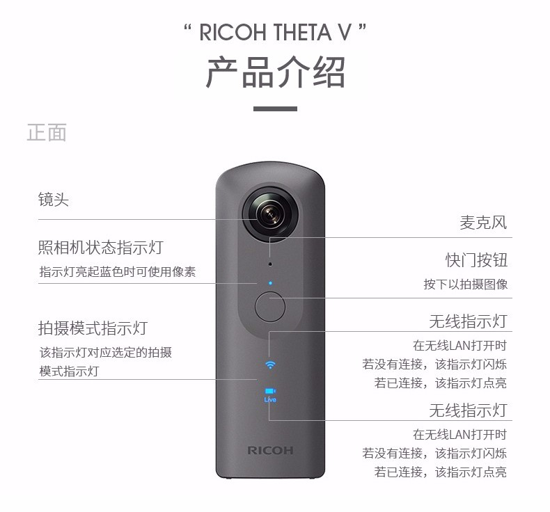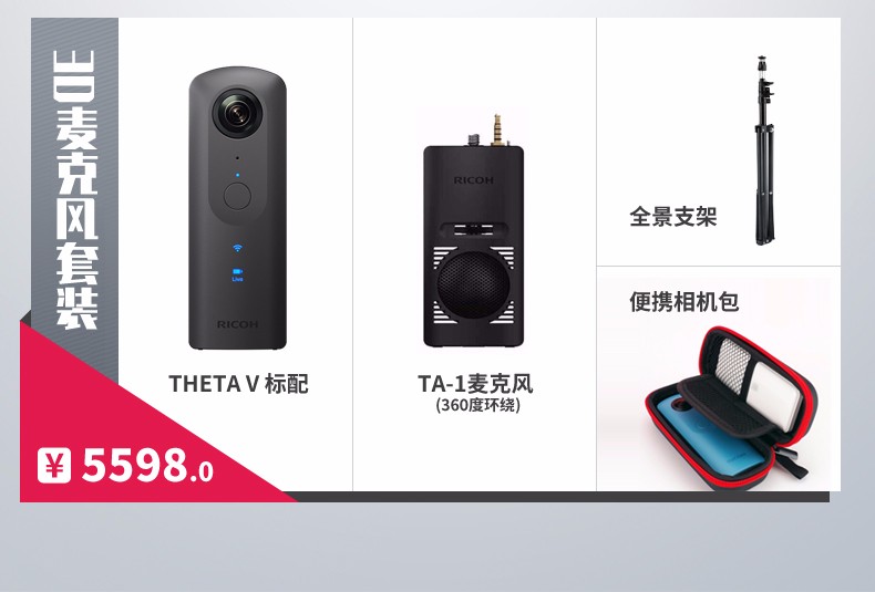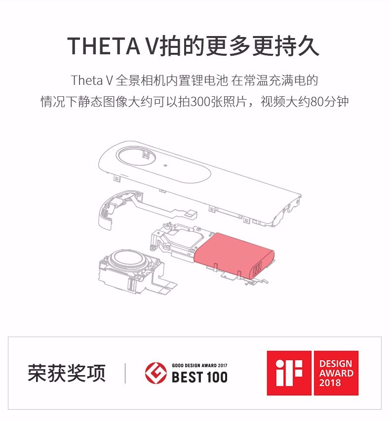 高清摄像机4K视频/720度VR全景看房 THETA V 【VR房源指定支架+专用电源】 官方标配